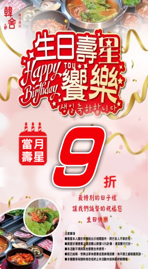出示證件享當月壽星9折。....